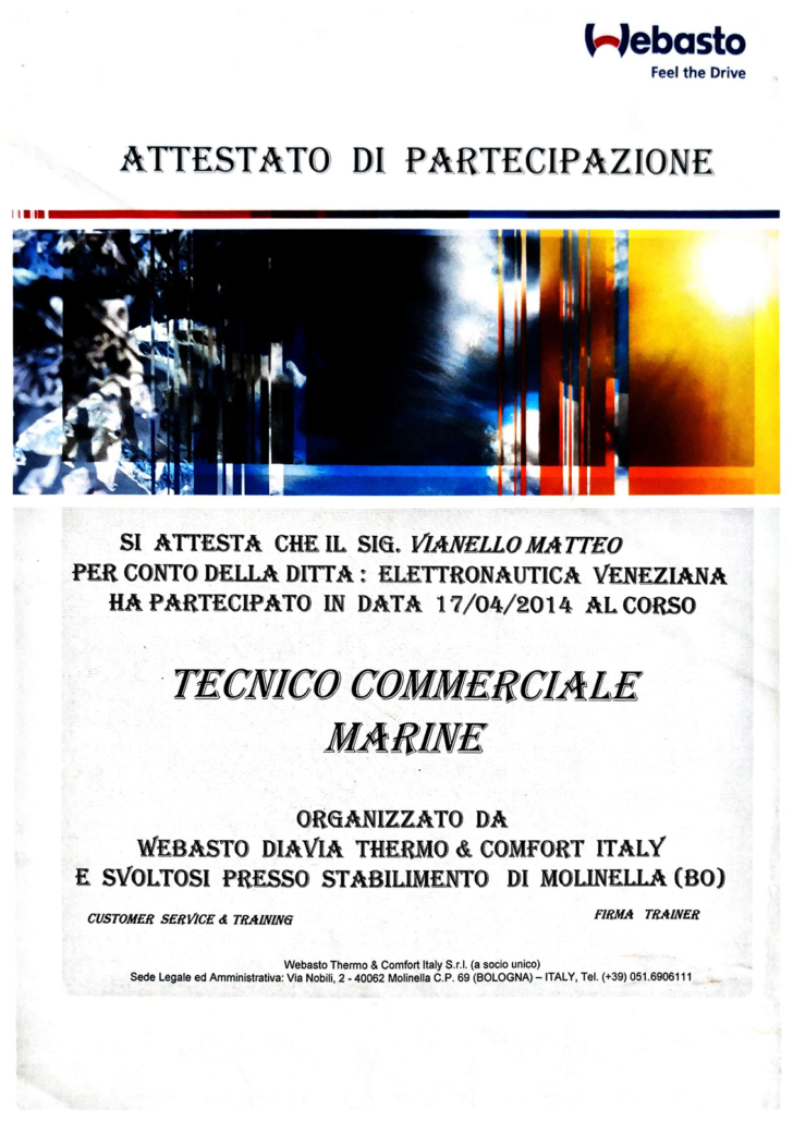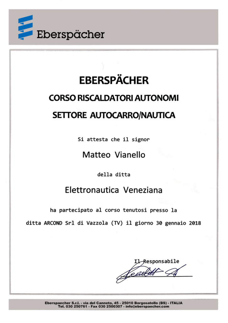 La professionalità è garantita, dai corsi specializzati e dall’esperienza in opera maturate negli anni, che promuove l’azienda quale leader nel settore dell’assistenza e nel post vendita nautico per i riscaldatori e climatizzatori Webasto ed Eberspächer.